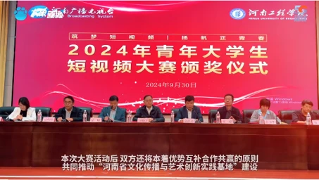 9月30日,河南广播电视台与河南工程学院携手打造的“筑梦短视频 扬帆正青春”大学生短视频大赛颁奖仪式成功举行