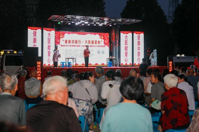 6月11日傍晚,在武陟县人民广场,河南省优秀健康科普作品汇演、豫剧《乡村医生》吸引了众多群众观看,让健康知识传播更接地气。