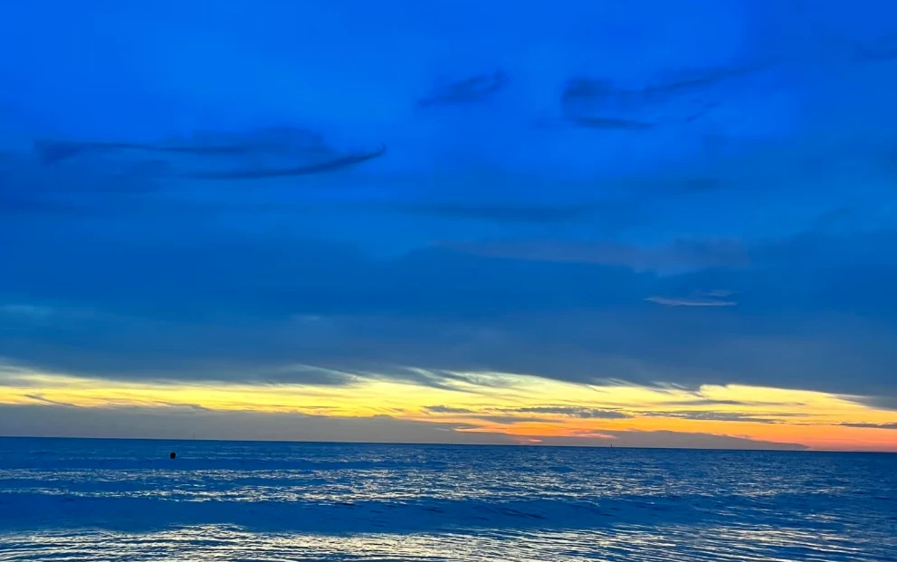 傍晚时分,近看湖光潋滟,远看云卷云舒。话谈三五好友,度过悠然时光。