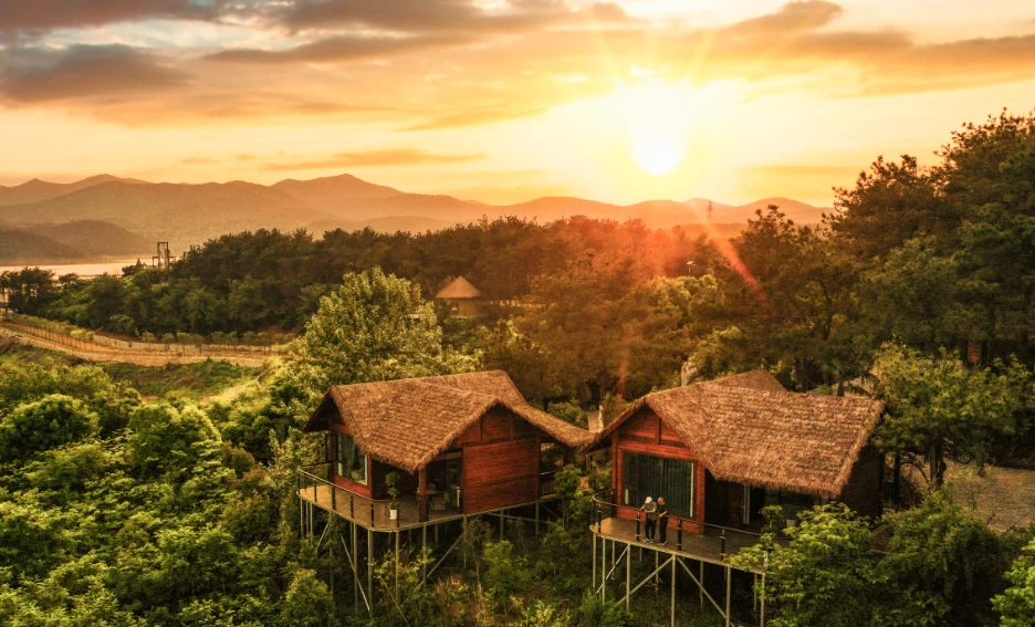 入住水韵山居,山湖画卷在眼前铺展,山水、绿植与原生树木交织,42间客房隐逸其间,多种房型,多数含江景露台。闲坐在此,一盏清咖、半卷闲云、满目潋滟。